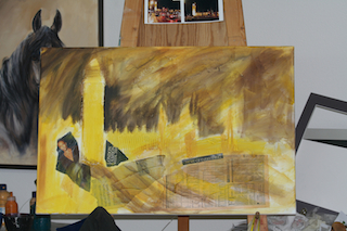 Bei Mixed Media Bildern werden neben Acrylfarben verschiedene Collagematerialien, Spachtelmassen und Sprühlacke eingesetzt.
