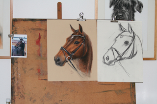 Tierportraits erfolgen in kleinerem Format (bis ca. 40x50 cm) in einer der klassischen oder impressionistischen Ölmalerei angenäherten Malweise, die Mittel- und Großformate in einem lockeren Malstil.