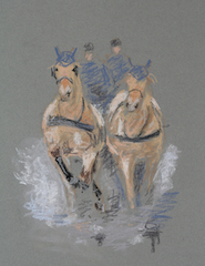 Für die farbigen Pastellzeichnungen werden weiche Pastellkreiden verwendet, mit denen zeichnerische und malerische Elemente kombiniert werden können. Die Zeichnungen erfolgen in der Regel auf farbigem Pastellpapier.